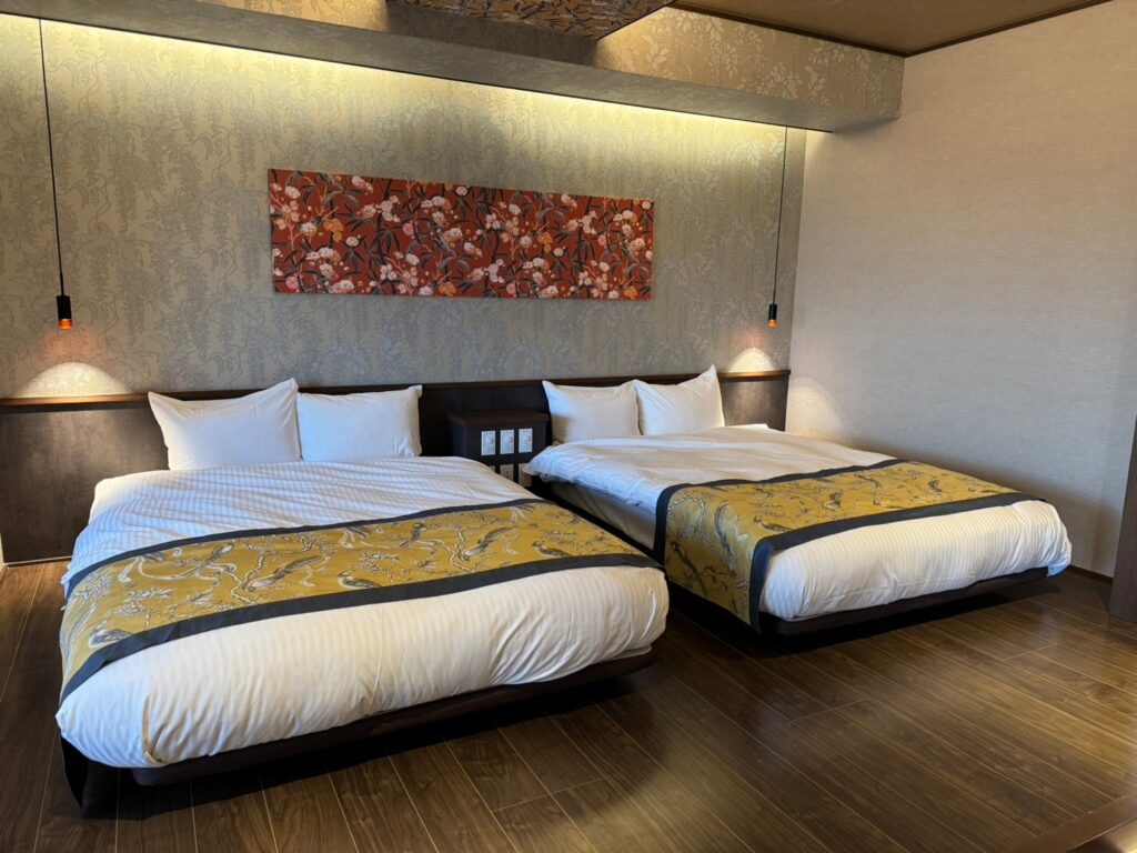 ベッドは、「シモンズ製」の高級ベッドを使用してくれているので睡眠に関しては完璧のサービスですね。 子供との添い寝の場合は、事前に伝えておくと真ん中の隙間に同じ高さの簡易ベッドを付けてつなげてくれました。